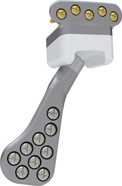 • Fixation mechanisms of the mandibular component head and the polyethylene fossa to the underlying titanium structures prevent gaps, rotations, and displacements, delivering a biomechanically reliable set;